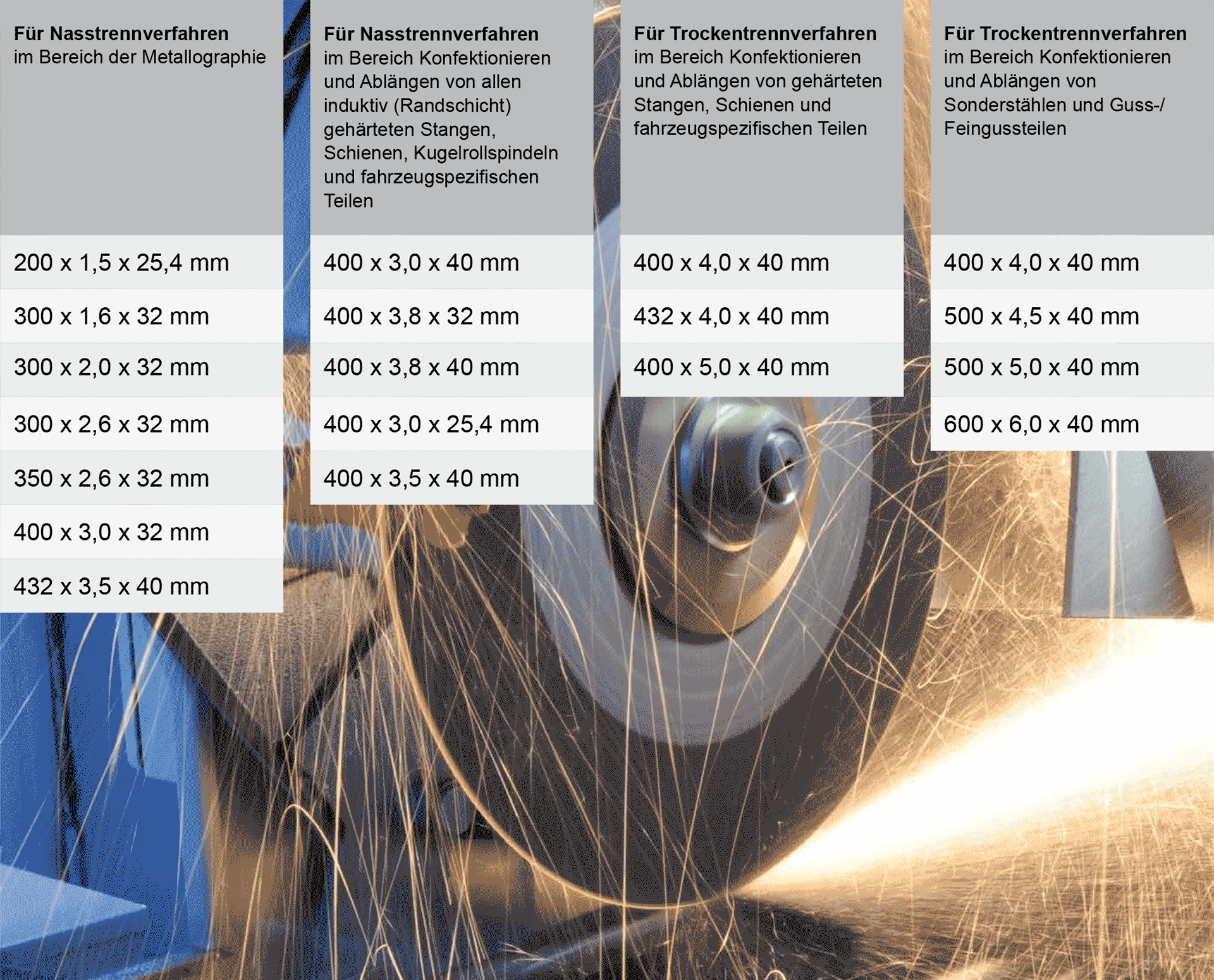 Zunächst unterscheidet man zwischen Trennscheiben für Nass- oder Trocken-Trennverfahren: